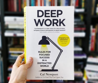 In Deep Work, Cal Newport teaches you how to develop your focus and resist distractions so that you can rise to the top of your field and drive toward your most important goals. He suggests that focus is like a mental muscle: Through deliberate training, you can strengthen your focus and expand your mental capacity.