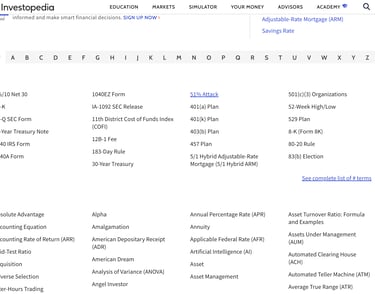 Investopedia is a great website for articles, (you'll find it on our "Article based classes" page too), but they also have the most extensive business term dictionary on the internet. If you've come across a phrase or word at work and need an explanation, there's a good chance it'll be in here.