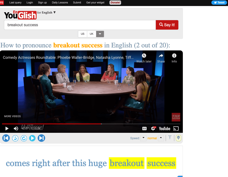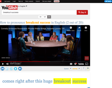 If you've found a word that you would really like to hear spoken by real people in a real situation then maybe finding it in a movie is the next best thing. This website lets you search millions of movie lines to find exactly the word you need. Hear your new vocabulary in lots of different contexts and in, (almost), real conversations.