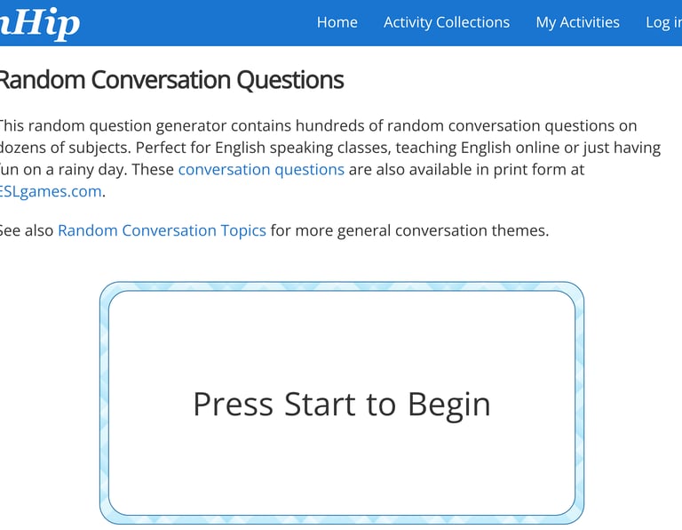 Random question generators can be great for finding discussion topics for our more relaxed and casual conversation classes. However they are also a great resource for making your speaking practice more interesting when you're alone. For techniques and tips on how to practice speaking when you're alone just ask me during our next call!