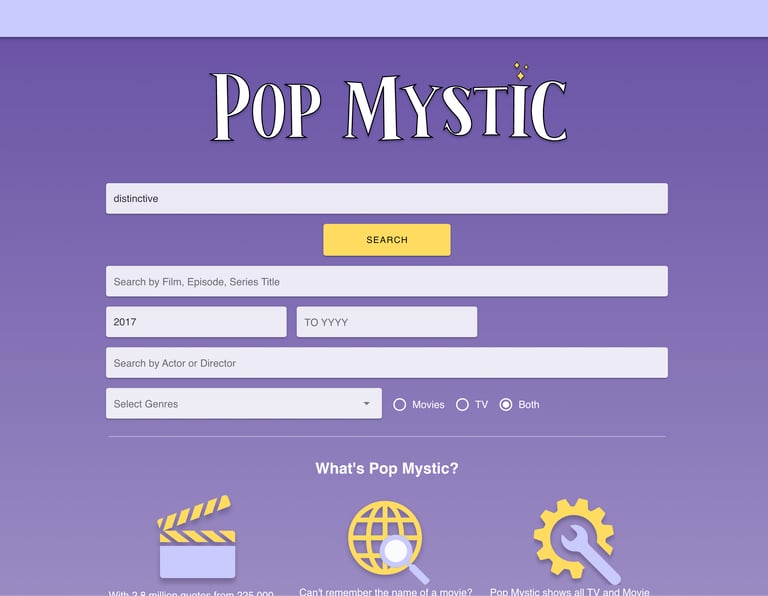 With 2.8 million quotes from 225,000 titles, Pop Mystic is the world's largest TV and Movie quote search engine. With Pop Mystic you can find examples of the words that you're interested in as they are featured in movie script from many decades past, or specify everything from dates to genres. It's a great tool for understanding vocabulary!