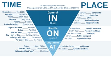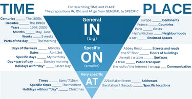 Second is collocations. These are words that are commonly found together. For instance, we can be "interested in" something or "focus on" something. These prepositions don't follow the triangle either.