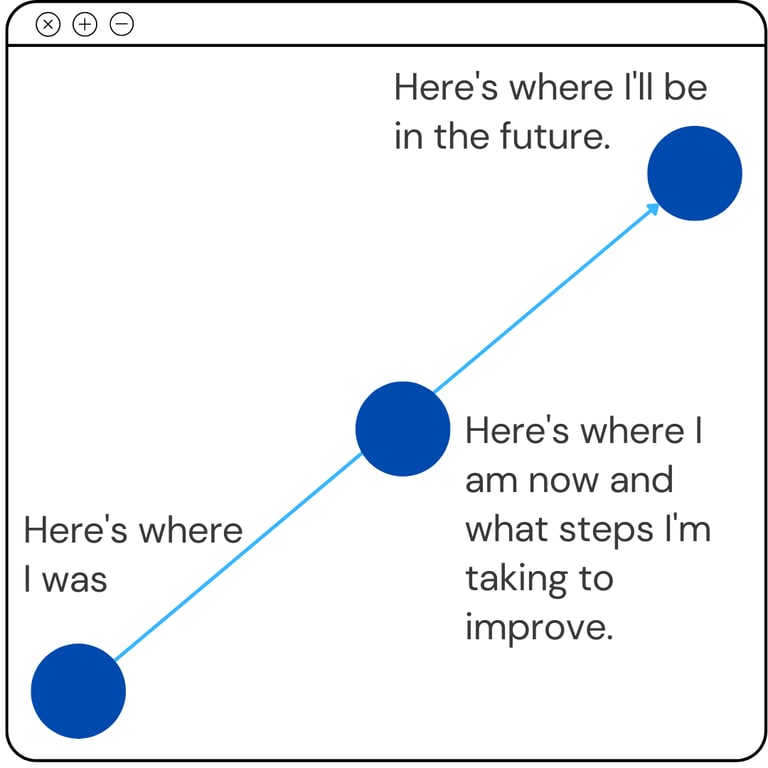 Part 1: The past. To start with we're going to identify a weakness, explain why it is a weakness, ideally by talking about soft skills, and importantly explain that this is something that you noticed some time ago. Maybe a couple of weeks, maybe a couple of months or more.